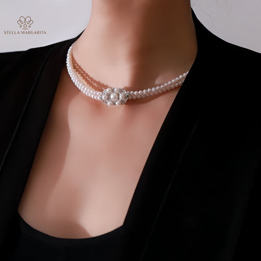 Collier ras du cou de mariée à double couche de perles