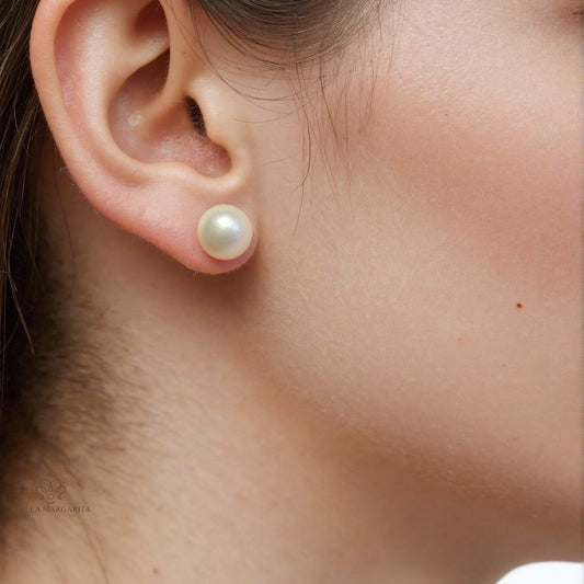 Boucles d'oreilles à tige en perles d'eau douce rondes blanches de 7 mm