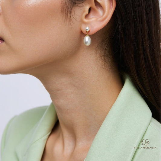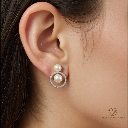 Boucles d'oreilles doubles en perles d'eau douce avec bordure argentée