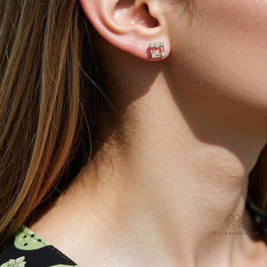 Clous d'oreilles en perles à bordure diamantée carrée